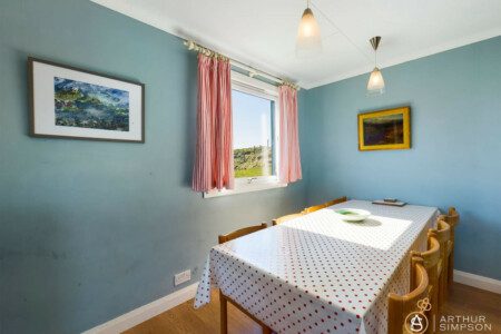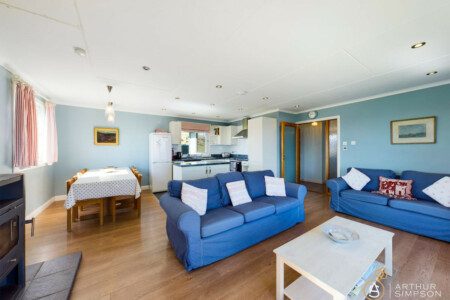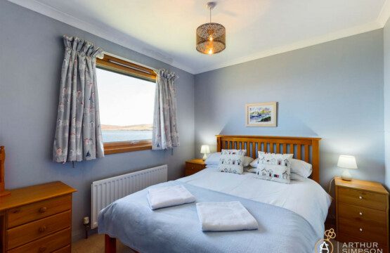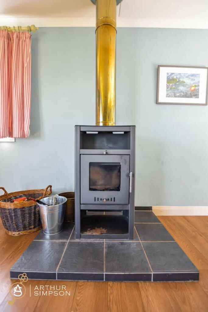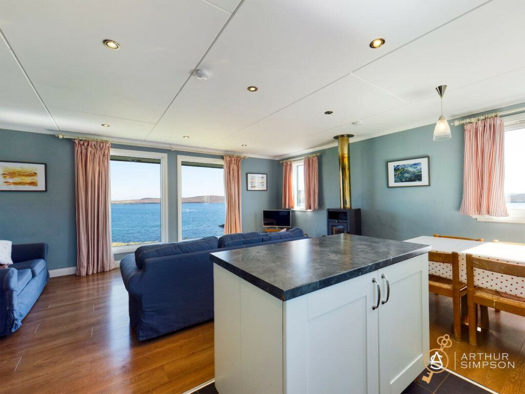 The living room boasts a big window looking right out onto the water. Sit in front of the fire, drinking your favourite beverage and simply watch the world go by.